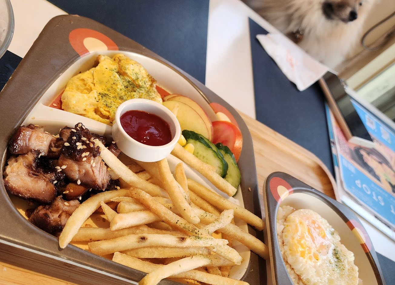 看到是寵物友善,所以很臨時地決定帶著我家少爺一起去,但因為當日店裏親子居多,所以很貼心的幫我們安排在邊角的位置,帶大型犬去的話還是事先詢問訂位比較好喔。