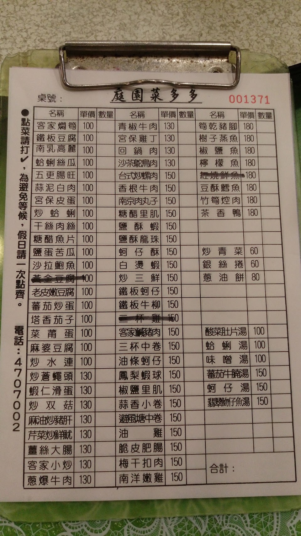 菜如店名,真的是菜多多,價格平實,主菜的肉類或海鮮真的不多,菜很多,價格便宜會反映在菜色上,樹子蒸魚還不錯,魚沒有土味,有提供免費白飯,甜點跟冰淇淋,也有免費停車,不過車位有限,如果是附近逛逛,用個簡餐而已或是以價格為優先考量,可以參考看看。 餐點:4 服務:4 氣氛:4