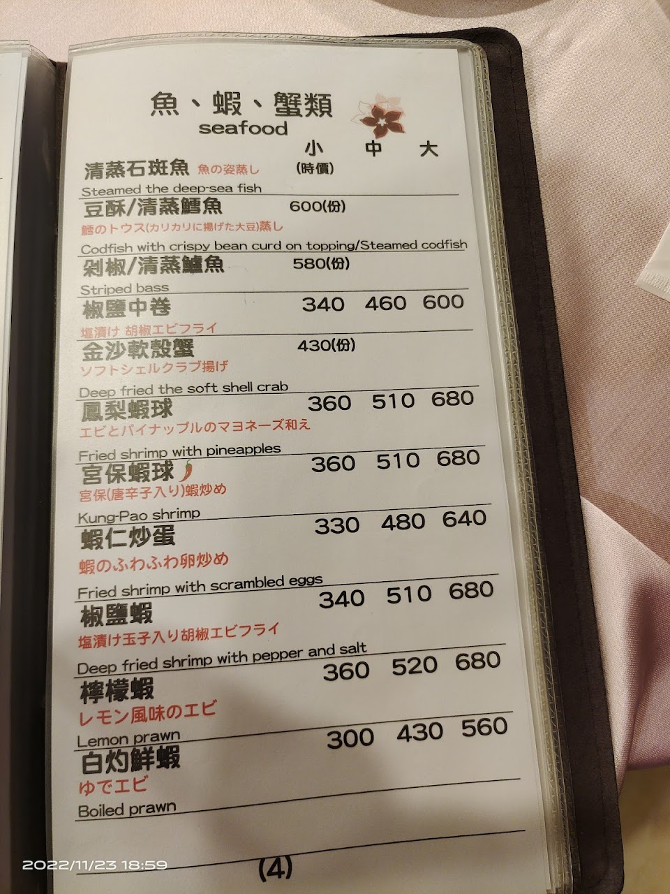 薑絲蛤蜊湯, 清蒸海上鮮, 鮑魚干貝佛跳牆, 榮華富貴大拼盤, 四季肥腸, 薑絲大腸
