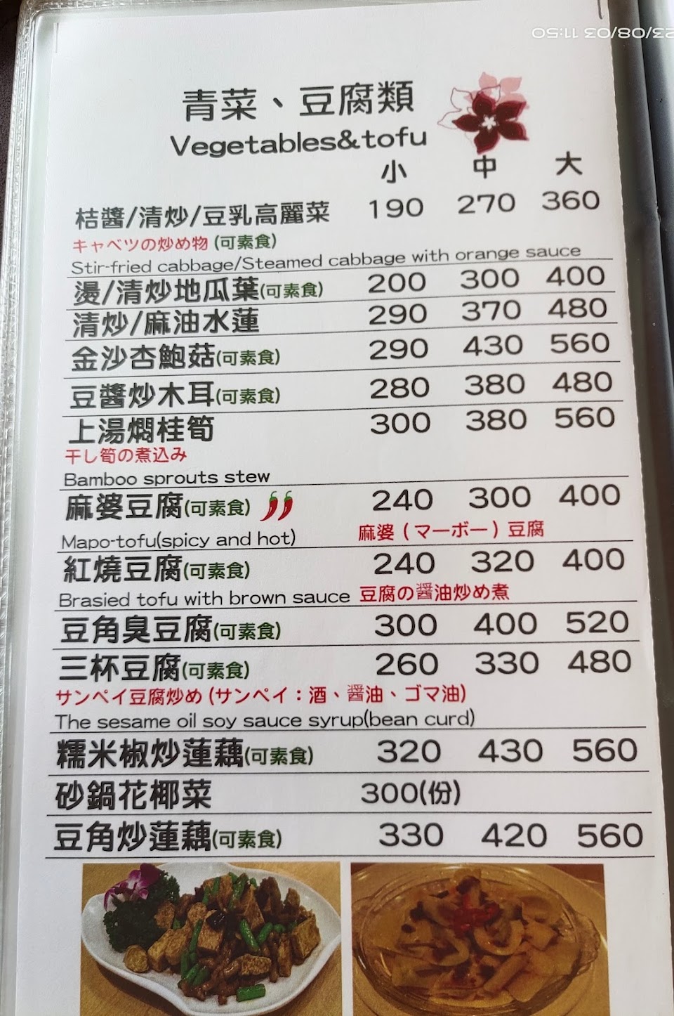 薑絲蛤蜊湯, 清蒸海上鮮, 鮑魚干貝佛跳牆, 榮華富貴大拼盤, 四季肥腸, 薑絲大腸