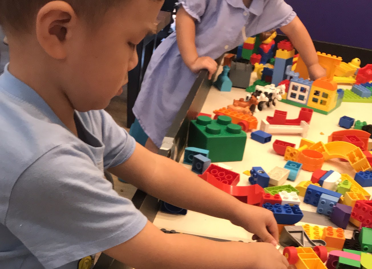 小朋友玩積木很開心 但在場地內攪麵糰機械聲音很大 ,吃的東西普通