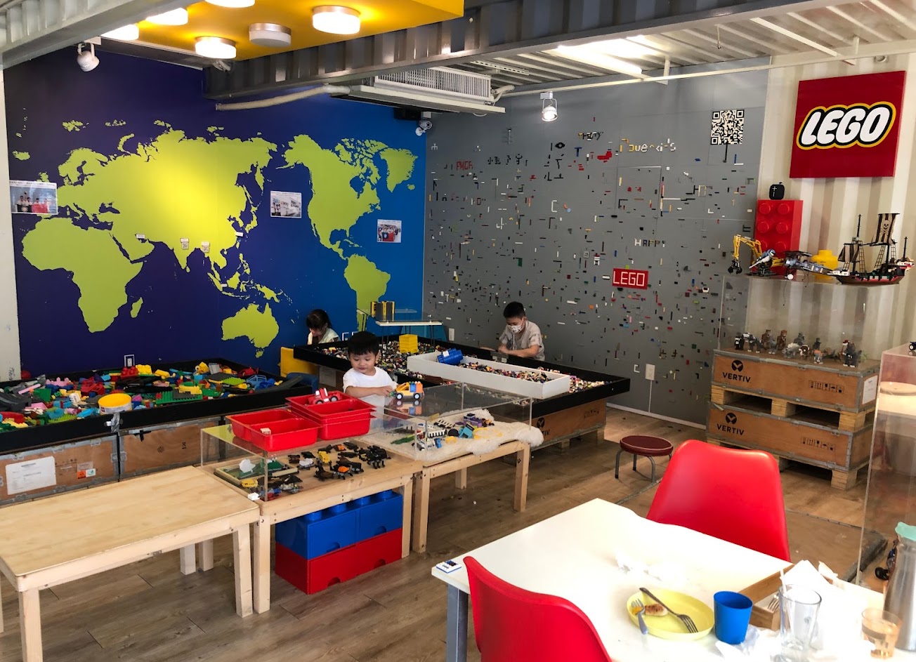 在貨櫃屋中玩樂高和用餐,不錯的體驗