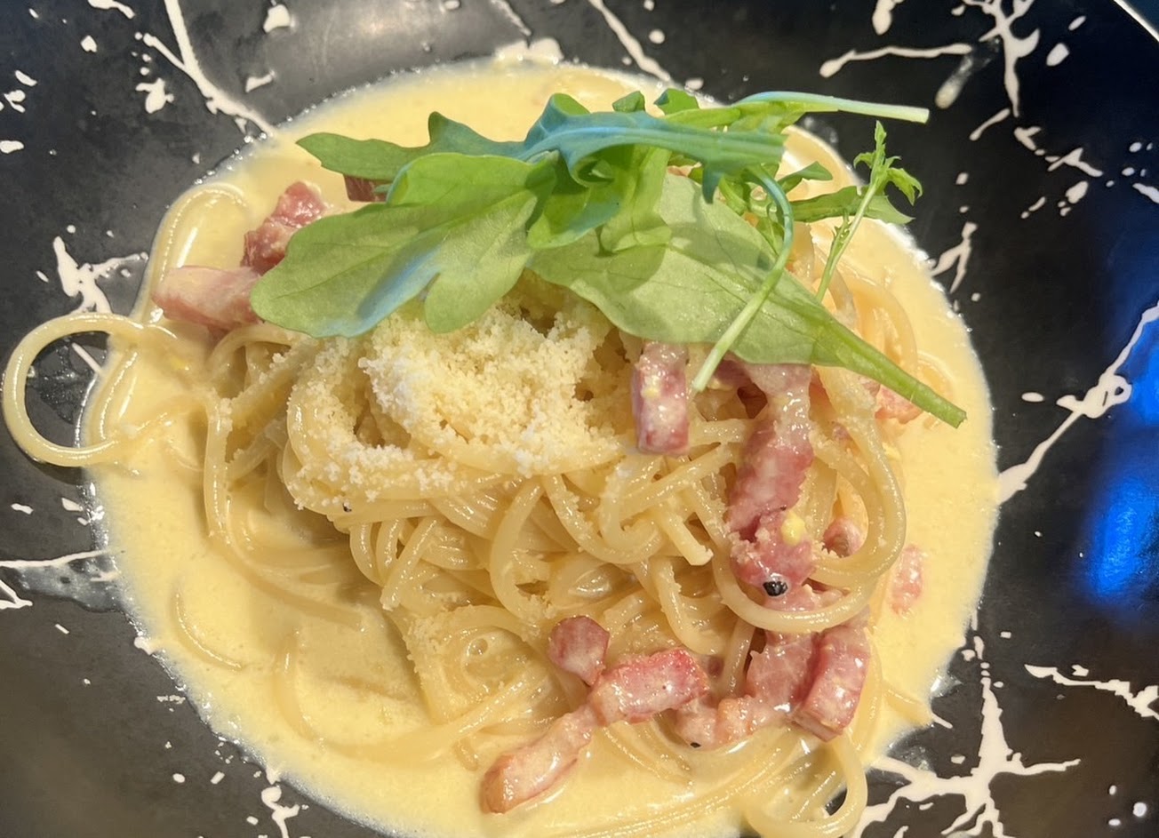 培根蛋黃麵吃的出師傅對火侯的掌握,不會像外面餐廳都是湯水跟麵分離