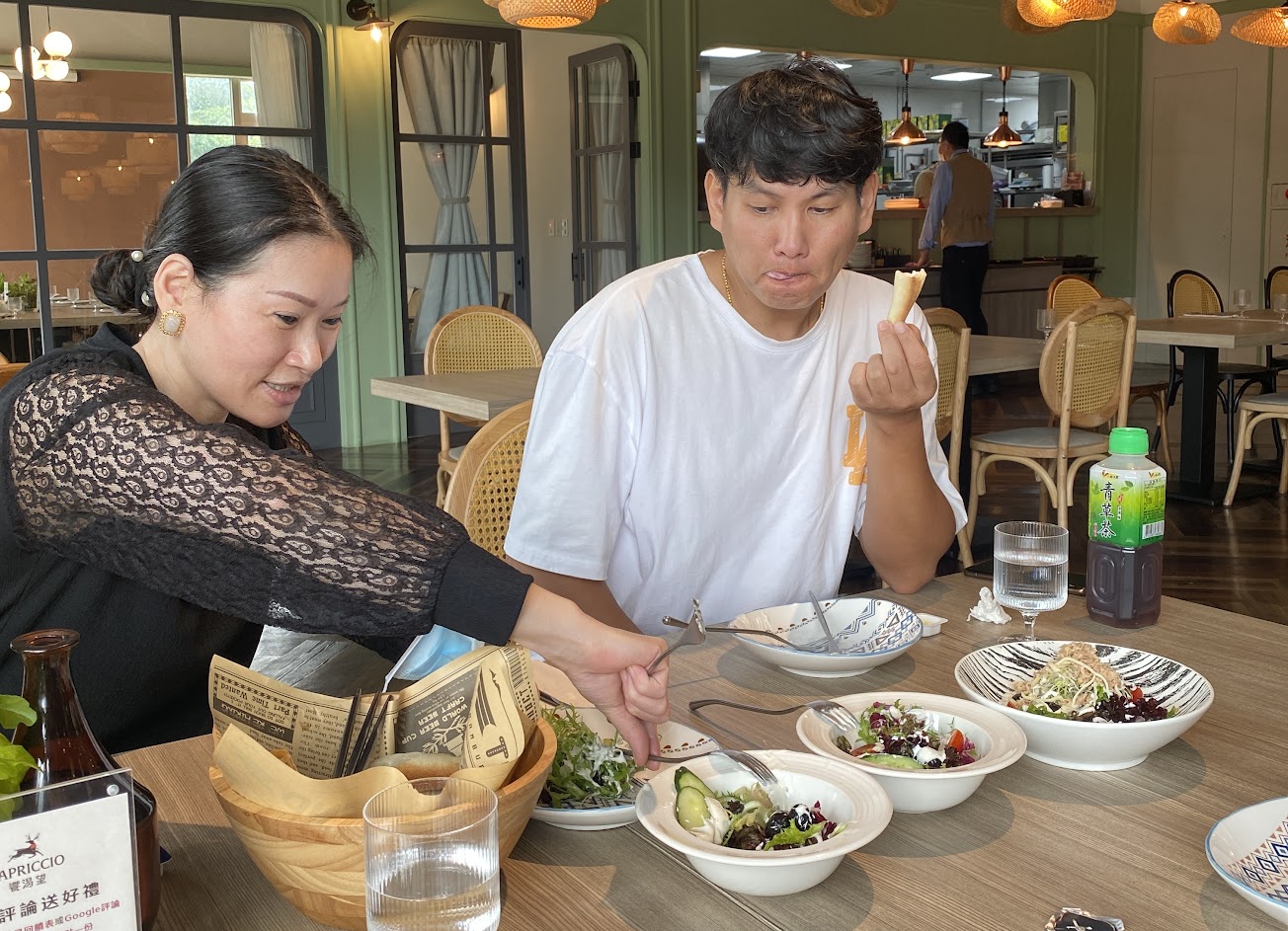 5:38餐點就開始陸續上桌,都很好吃,但最驚艷的是饗渴望肉醬斜管麵,從來沒看過麵體體積那麼粗的斜管麵,我老公一直說好吃,麩質過敏的我也忍不住破戒了?