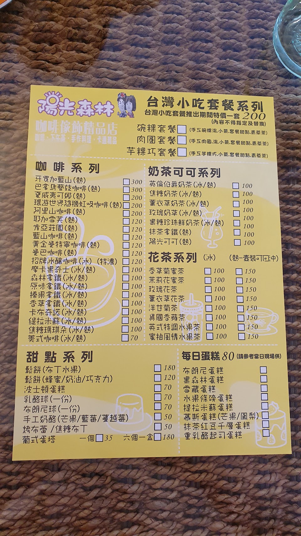 “陽光森林”是我每星期六與老公必造訪的,快樂“咖啡屋”,有好吃甜品,有好喝咖啡,夏日有冷氣,雨下了避雨,天冷了,避寒,與老公聊聊天,喝杯咖啡!好多好吃甜品,好幸福!我好喜歡這個“咖啡館”!與老板,老板娘相處很令人愉快。