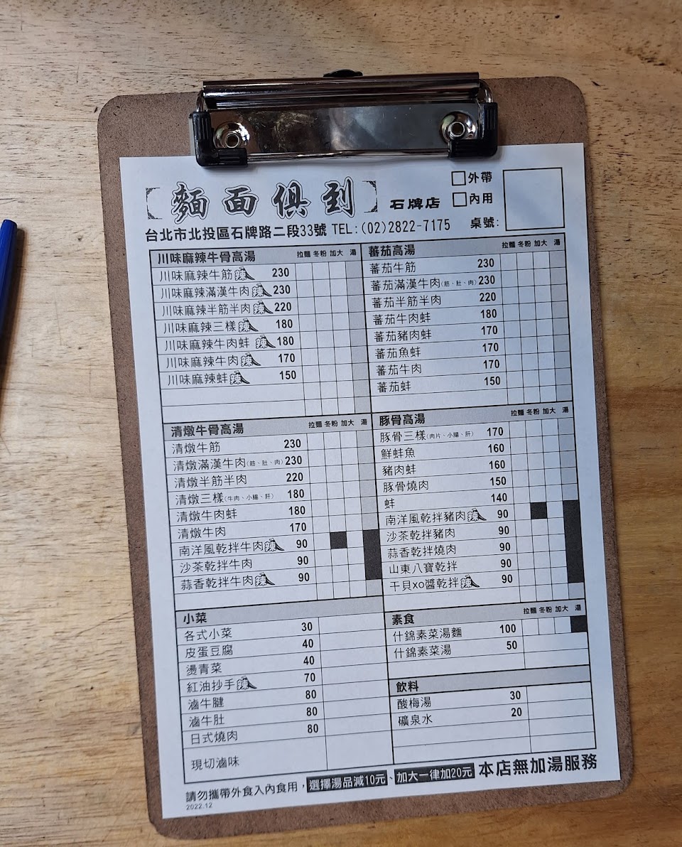推薦 清燉牛肉蚌麵 170 元最佳!