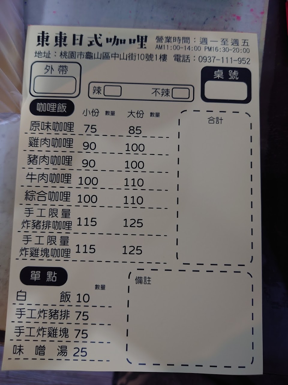 綜合咖喱飯(小份)食材新鮮內容豊富,口味一級棒,下回再嚐別的. 服務 外帶 餐點類型 午餐 平均每人消費金額 $1-200 餐點:5 服務:5 氣氛:4