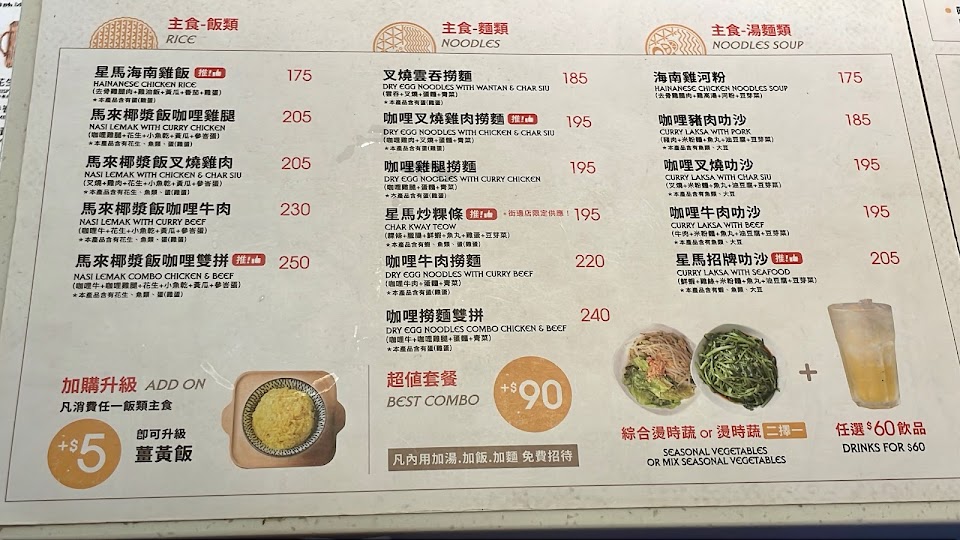 招牌叻沙$185好好吃啊? 重點還可以免費續湯有夠好喝! 臨走前再外帶一個海南雞飯回家,$155的海南雞飯也好好吃! 蜂蜜檸檬也好好喝!