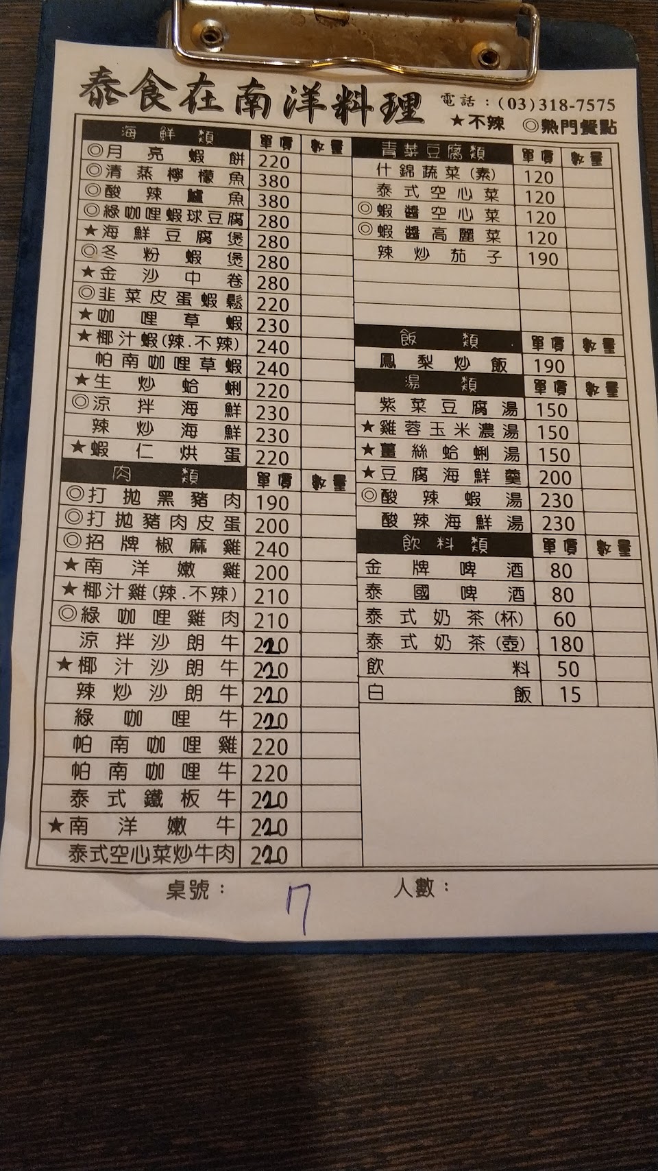2024最新在地推薦餐廳的菜單_泰食在的菜單、圖片