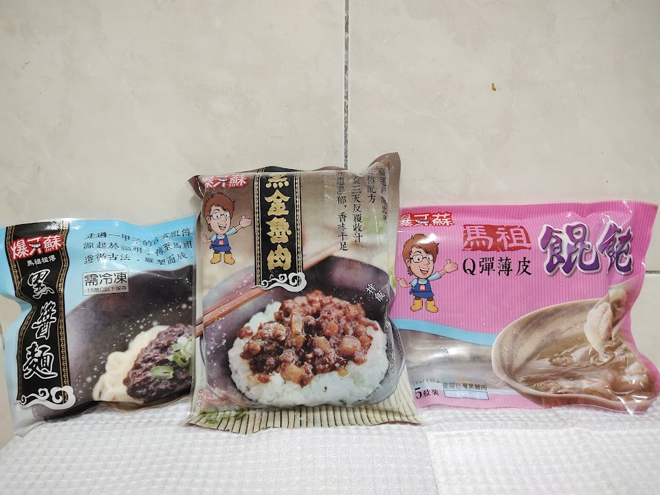 這次買的產品有馬祖黑醬麵、黑金魯肉跟馬祖餛飩