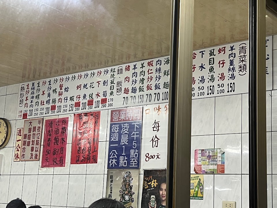 小時候的回憶一點都沒變 價格都是很實惠 服務 內用 餐點類型 其他 平均每人消費金額 $1-200 餐點:4 服務:4 氣氛:5 建議的餐點 炒劍筍, 羊肉 炒麵 60 元, 蚵仔湯 小
