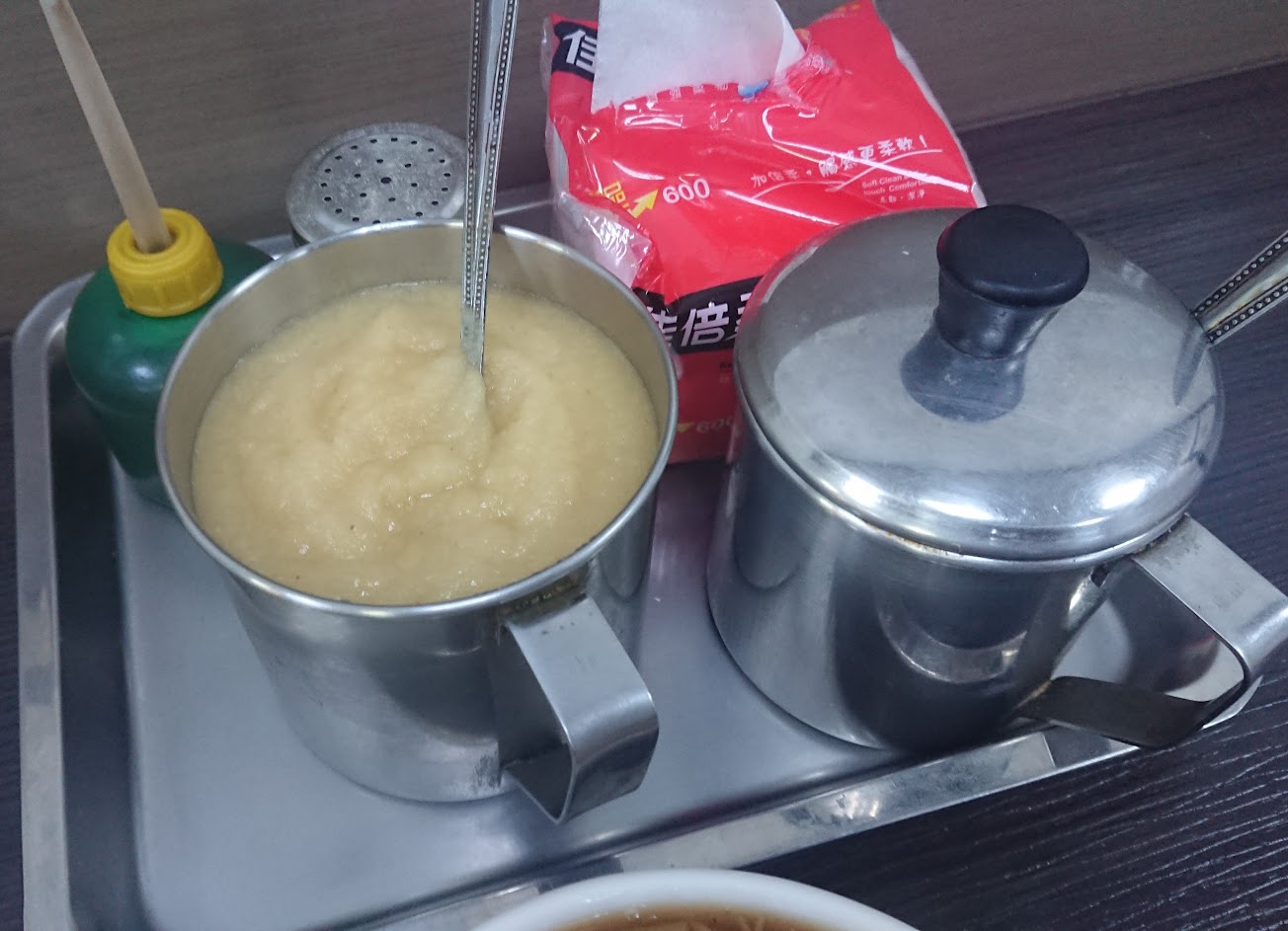 桌上有醬料瓶可自行添加!