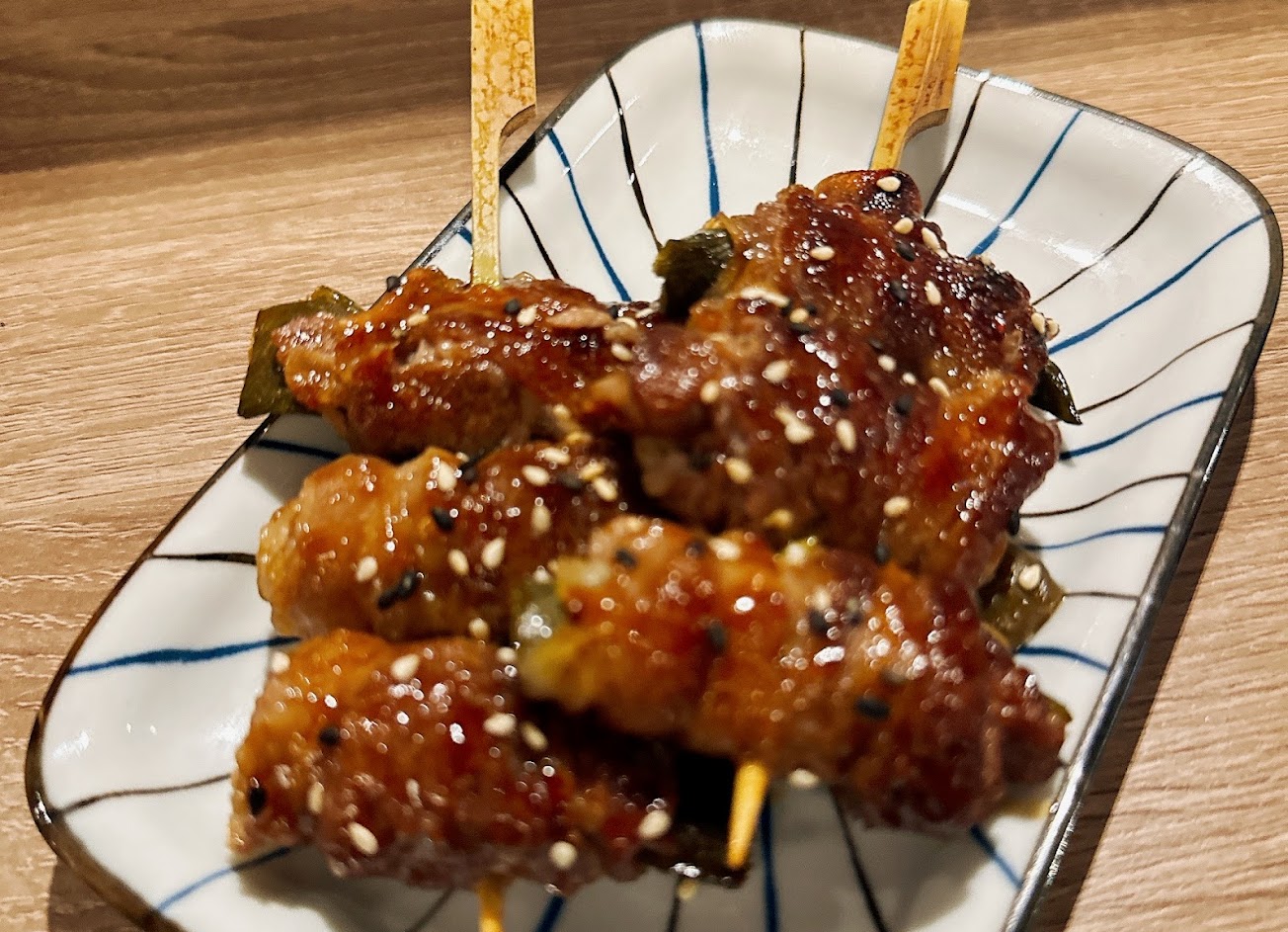 店面裝潢超好看又有好聽的歌!老闆個性超nice、烤串超級美味? 烤飯糰裡面有起司鮪魚!!