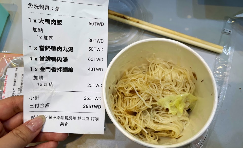 點好幾次外送~好吃! 希望店家可以在外送新增鴨肉飯多醬汁or鴨油的選項,湯品的部分也希望可以用兩層蓋子,點好幾次幾乎每次湯都漏出來整個袋子濕濕的,蓋子上也一層湯..加價多加購蓋子也是OK的!