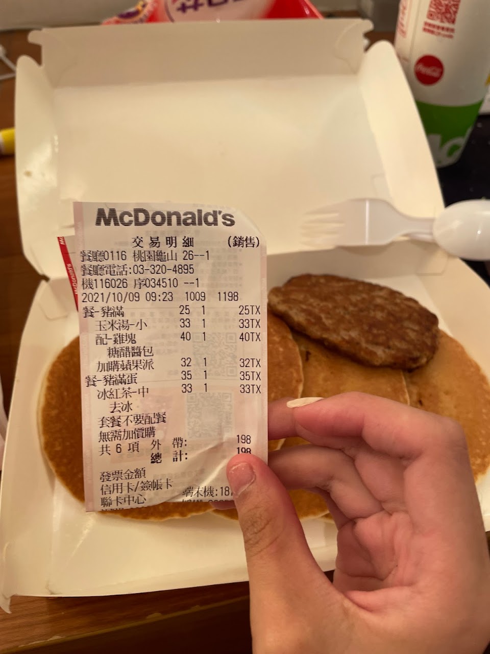 打電話跟店家反應時也邊吃餐,才發現薯條跟雞塊已經很冷 是那種軟軟的感覺!唉~原本對龜山麥當勞印象很好的說