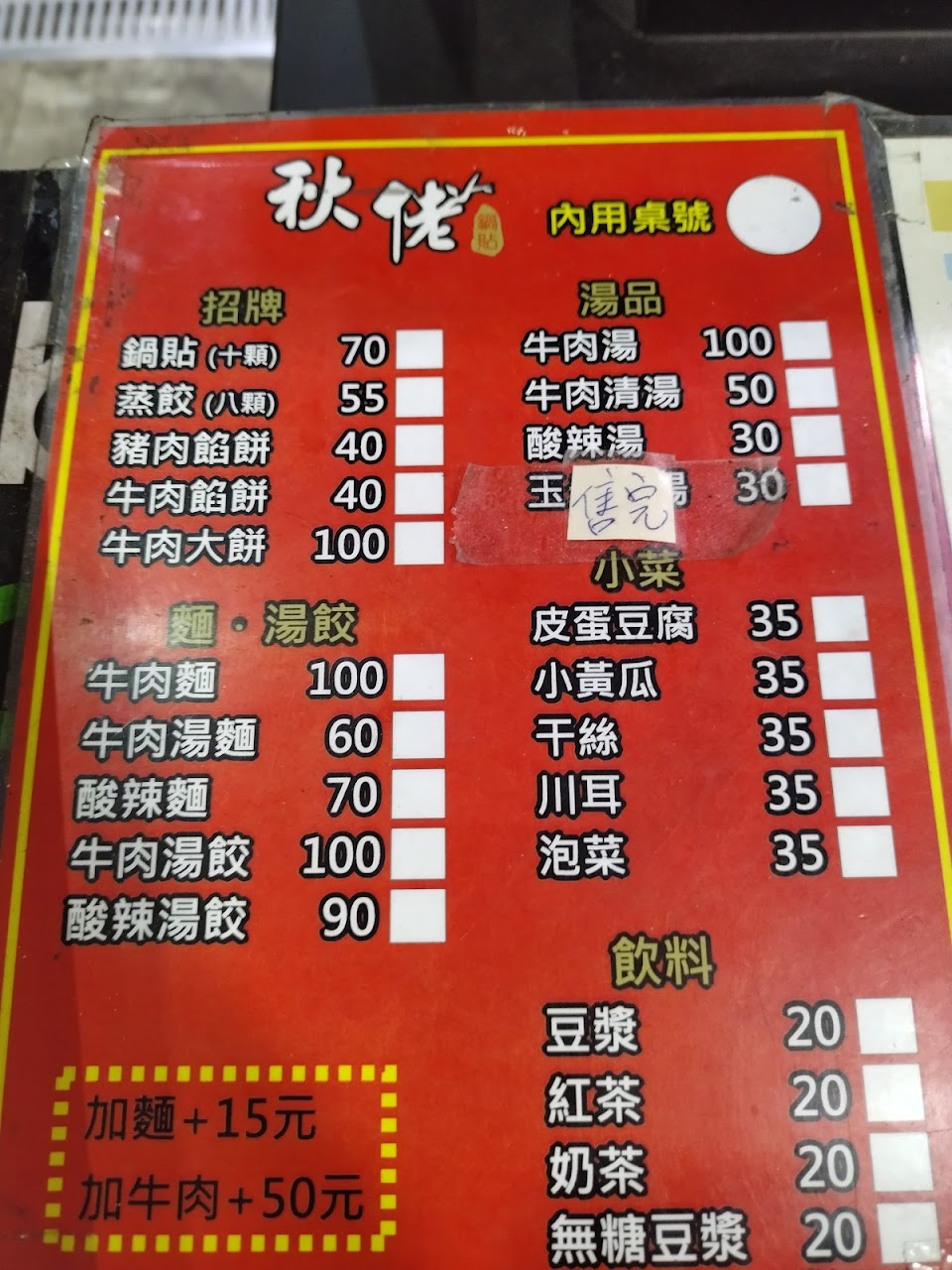 2024最新在地推薦餐廳的菜單_秋佬鍋貼的菜單、圖片