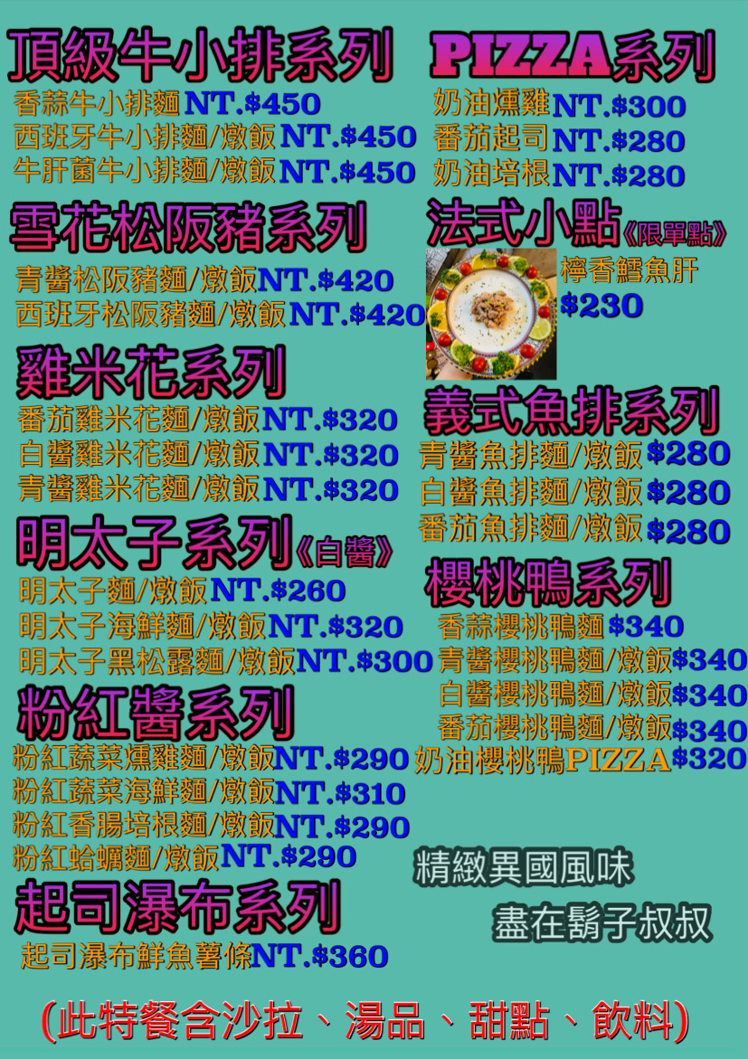 >義大利麵很多種口味,價格很甜?