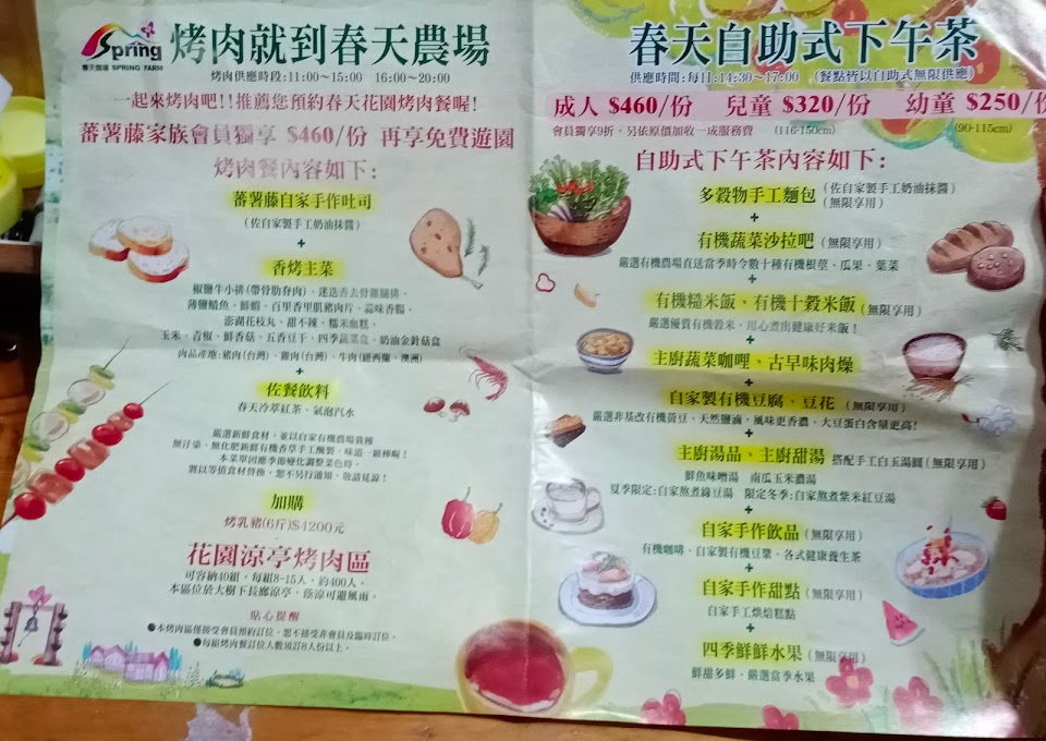 排餐價位 高 但是用餐 可以免費到 春天農場的後山走走逛逛裡面的 面積還蠻大的 可以拍拍照 看看花 算起來 還不錯 可以耗掉一整天適合帶小孩子來走走