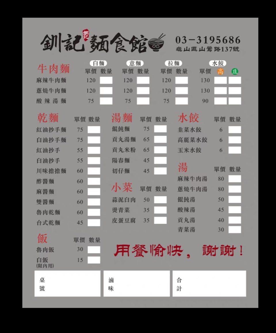 2024最新在地推薦餐廳的菜單_釧記麵食館的菜單、圖片