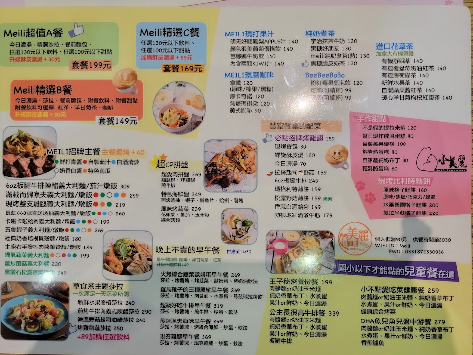 餐點美味,服務貼心,環境舒適!幾乎快要一週吃一次了,濃湯常常有季節特殊的驚喜口味,螺旋酥皮更是只有這邊才能吃到,絕對必點!來吃可能快5年了,還沒有被雷過,長庚附近意大利麵必推Meili?? …
