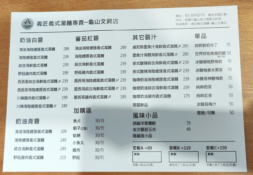 2024最新在地推薦餐廳的菜單_義匠義式湯麵-龜山文興店(公休日請看FB&IG)的菜單、圖片