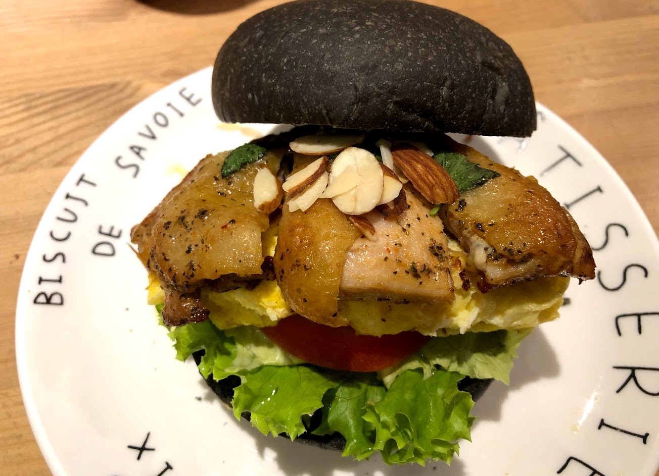 乳霜紅茶$55/ 嫩雞有股塔香(竹碳黑堡)$85/肉丸小咖變大咖(牛)$179
