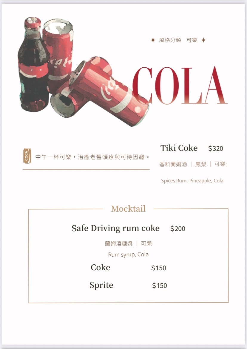 調酒好喝 服務 內用 餐點類型 其他 平均每人消費金額 $800-1,000