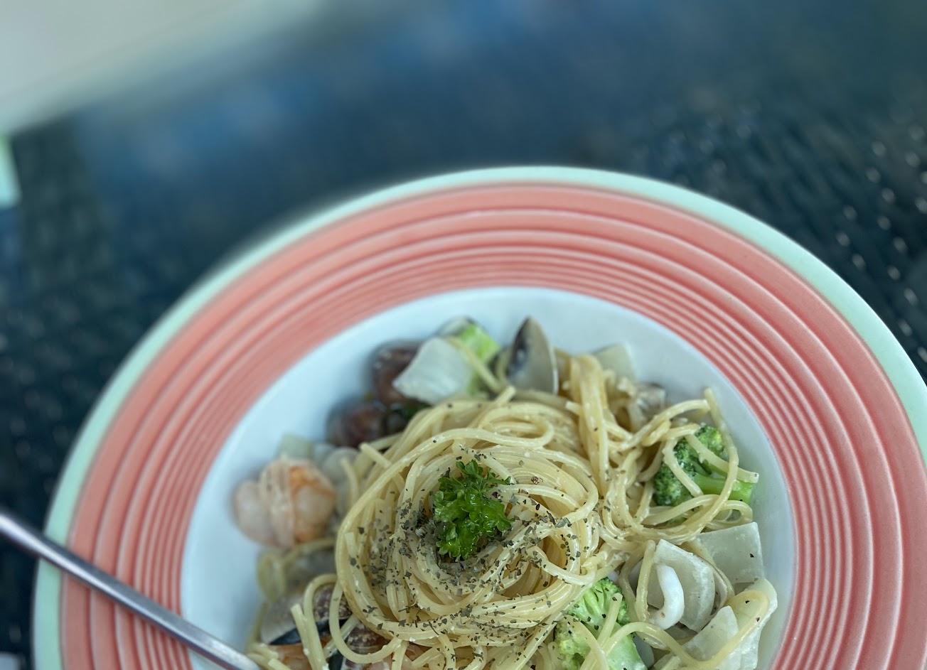 義大利麵唯獨稍鹹些,海鮮食材也新鮮,口味也入味,好吃。