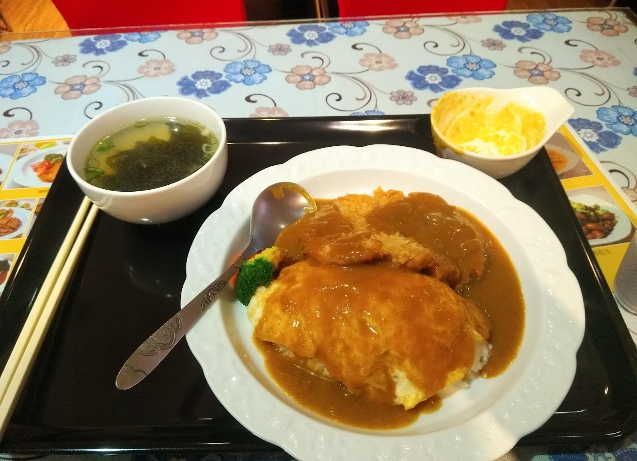 我點牛排南洋風味咖哩飯。 幾個我以為但是店家沒做到的地方: 我以為會是軟嫩長米飯,並不是,只是一般米飯。 我以為是厚一點的牛排肉,並不是,只是一片一般稍硬的牛肉片。 我以為是感覺普通的咖哩醬,並不是,是不帶辣味泰式風味的咖哩醬;這點還不錯。 其他日式、水果風味咖哩醬…大概可以想像。