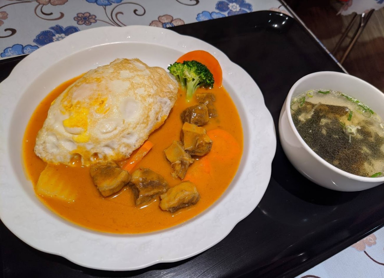 我點牛排南洋風味咖哩飯。