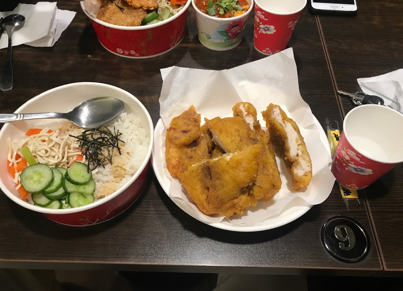 炸雞塊蓋飯跟咖喱炸豬排飯 都很好吃 炸雞塊本身已經有鹹度 酥脆好吃