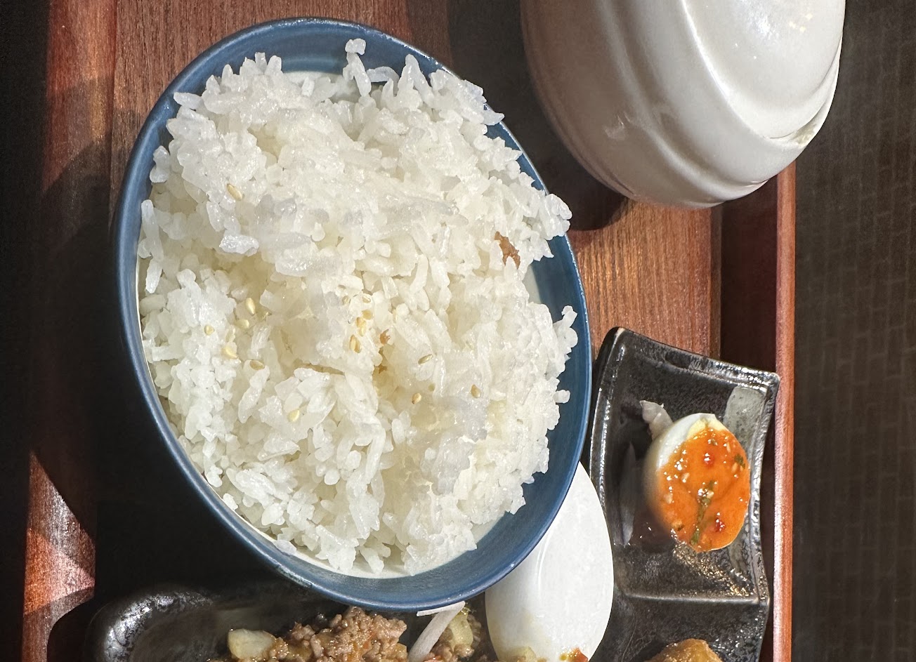 今天點了綠咖喱雞定食,定食有高麗菜、一個厚月亮蝦餅、蛋、ㄧ碗湯。