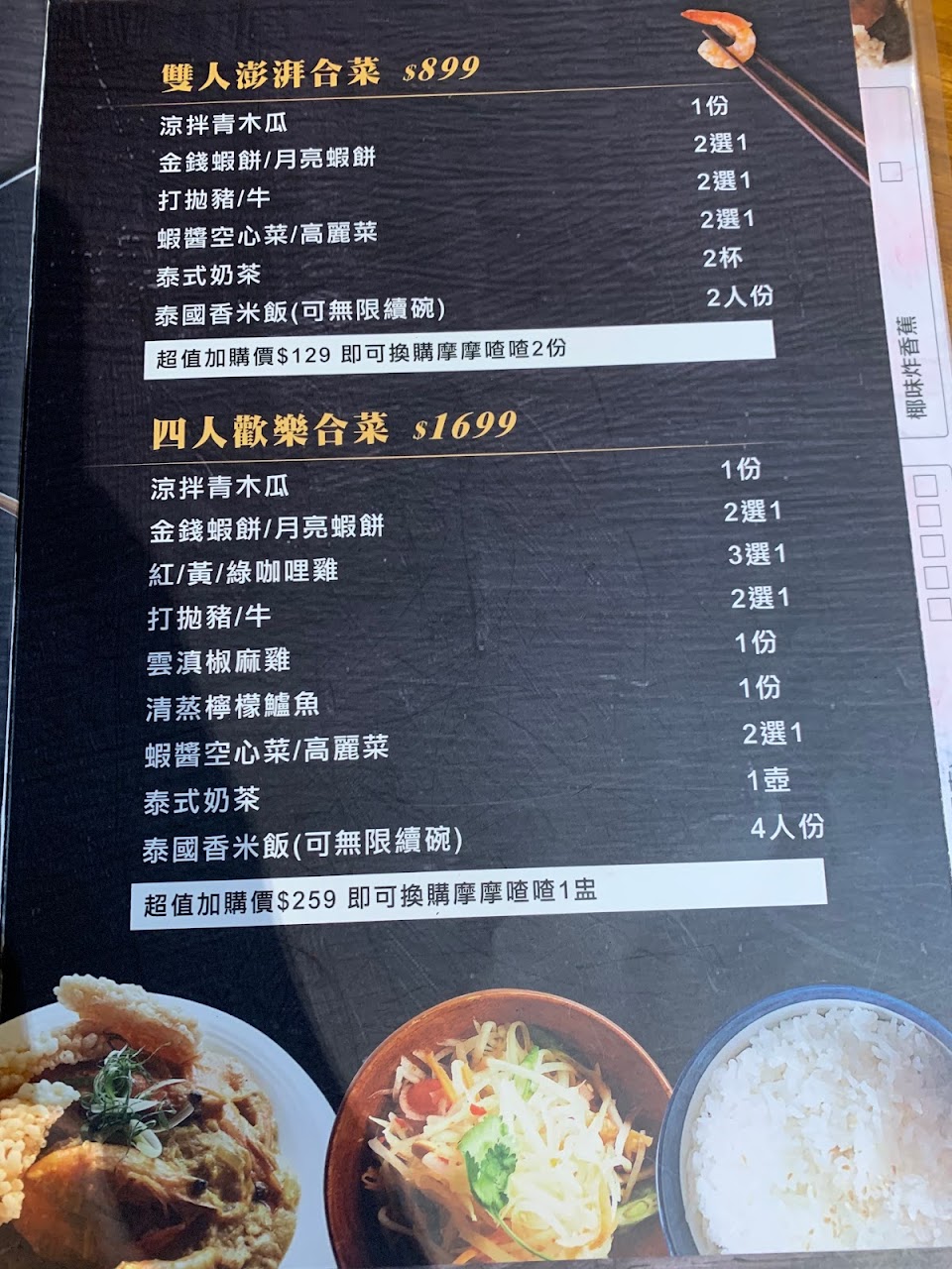 月亮 蝦餅, 椰汁綠咖哩雞, 打拋豬定食