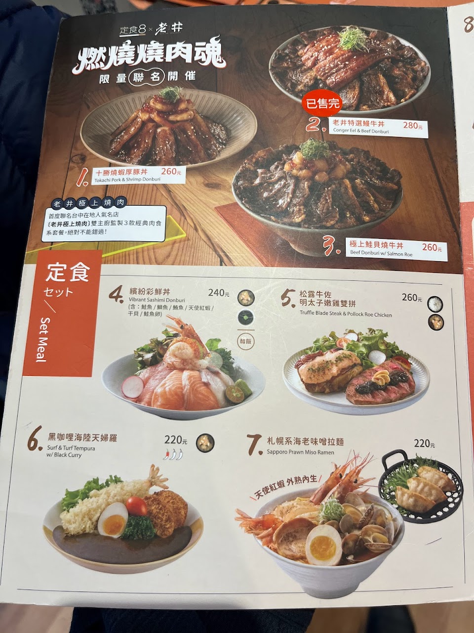 新的定食八,雖然自助吧簡化成只有麥茶,但是定食的品質更提升,還是比較好的 服務 內用 餐點類型 晚餐 平均每人消費金額 $200-400