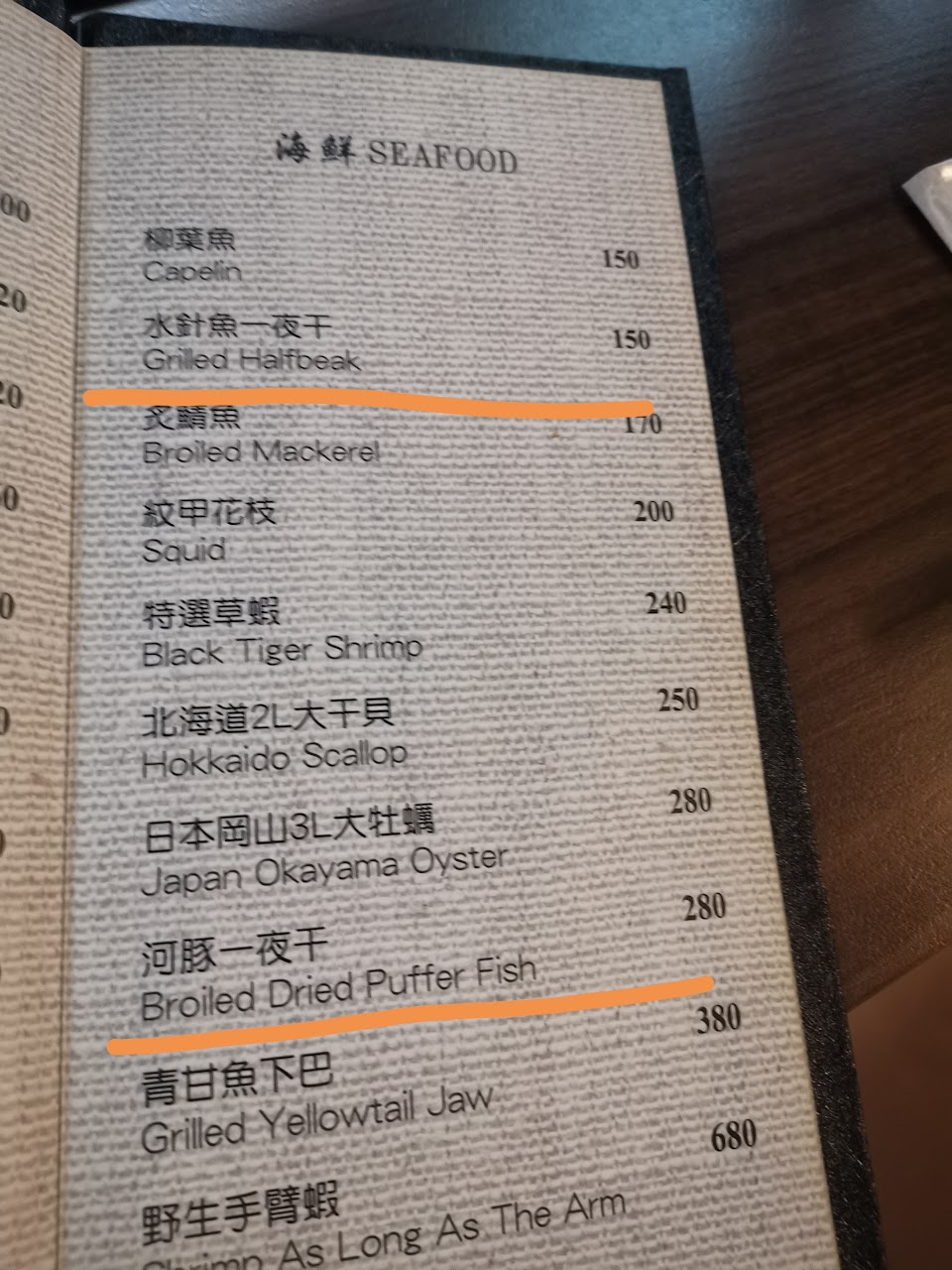 月見雞刺身, 河豚一夜干, 烤河豚