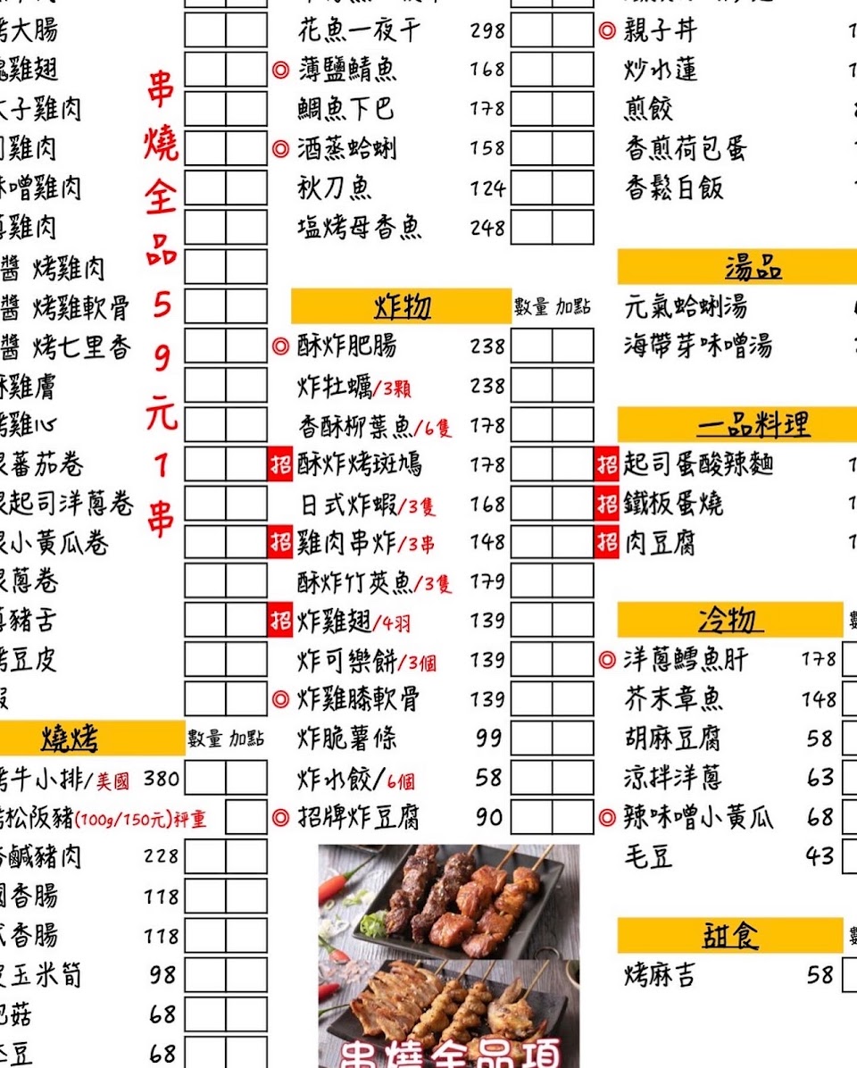 烤串都很好吃 特別喜歡蛋燒 啤酒也很讚 推推 服務 內用 平均每人消費金額 $600-800