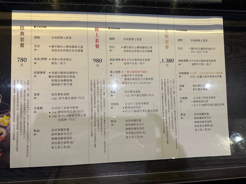 服務人員很貼心,用餐點體驗很不錯,整體出餐流程也很順暢,但在刺身這道餐點有些改善空間。