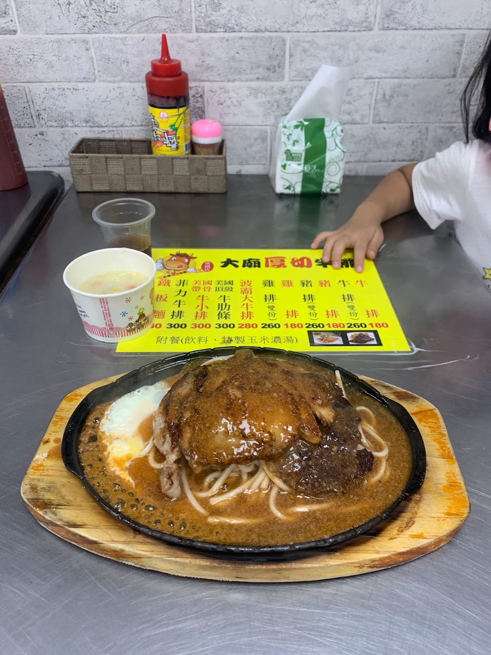 好吃又不貴,豬排有著香蒜的味道,雞腿很嫩,建議可以點雙拼,兩種肉都能享受到,而且,鐵板麵也超好吃的,玉米濃湯也濃厚,重點是還有冷氣吹,真的是一個推薦大家,吃了再說!吃了,就知道,我說的讚啦!