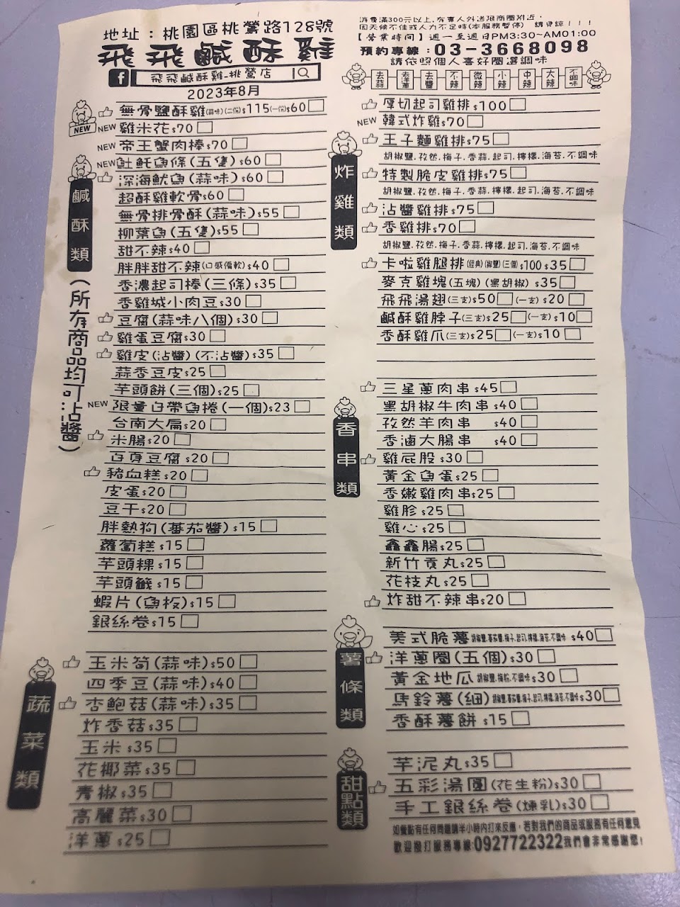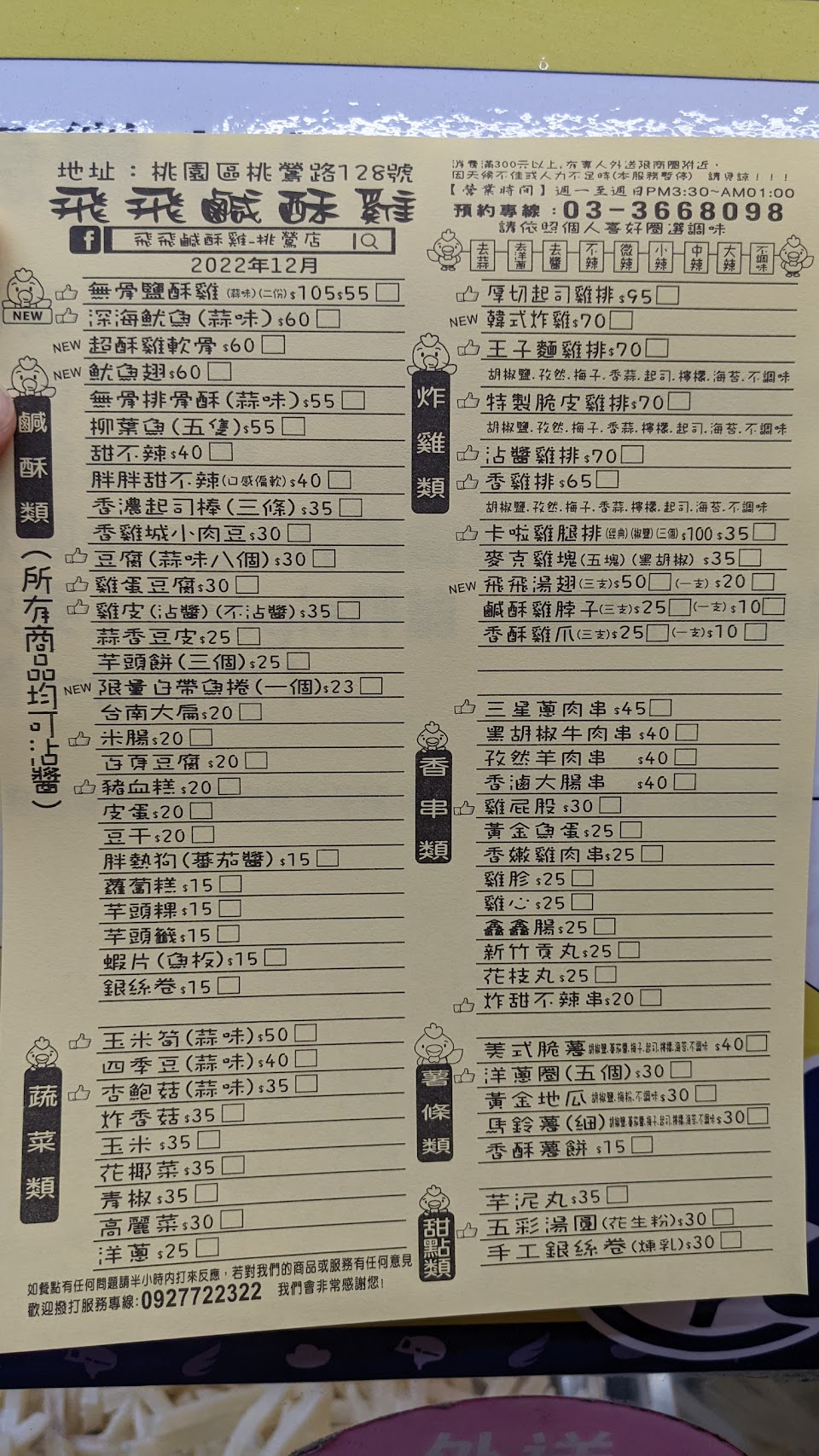 2024最新在地推薦餐廳的菜單_飛飛鹹酥雞桃鶯店的菜單、圖片