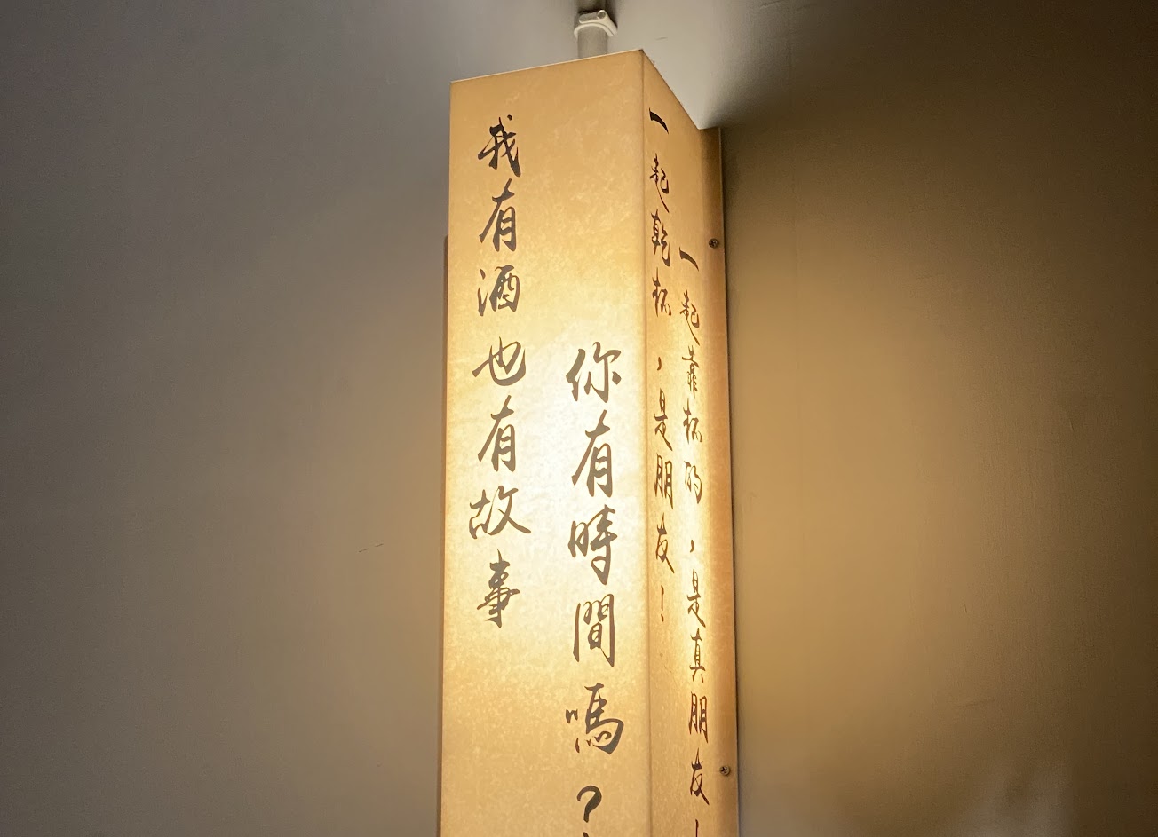 我有酒也有故事 那你有時間嗎? 這牆上的句子真是讓人會心一笑