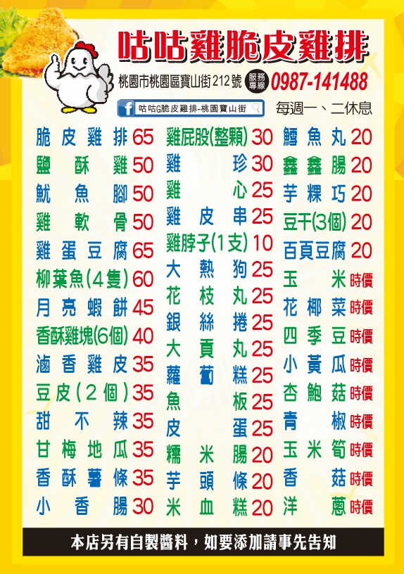 2024最新在地推薦餐廳的菜單_寶山咕咕雞鹽酥雞的菜單、圖片