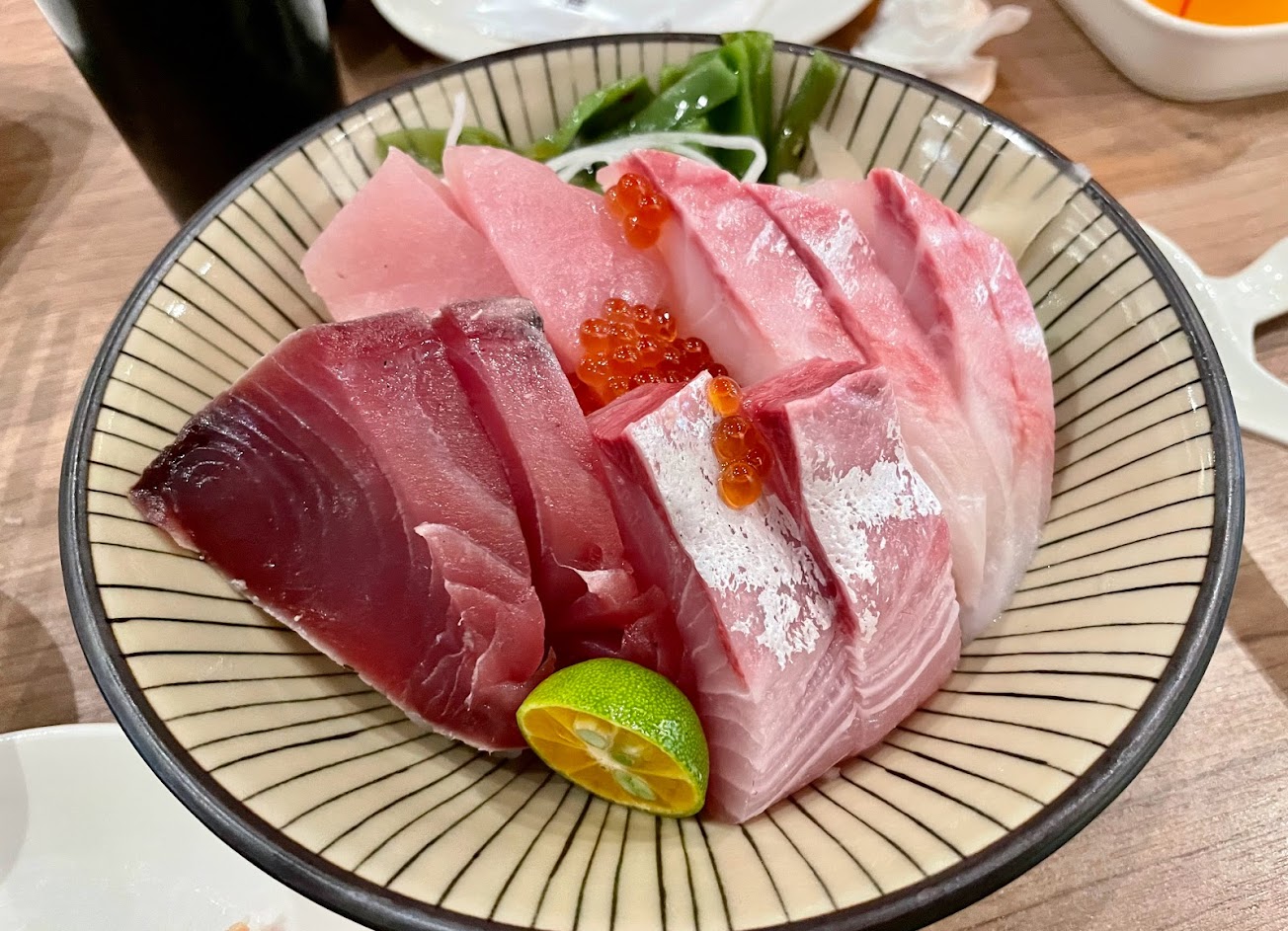 生魚片切的巨大塊讓外行以為很有cp值,口感很差加上沒什麼油花,大概就是吃到飽buffet等級的。