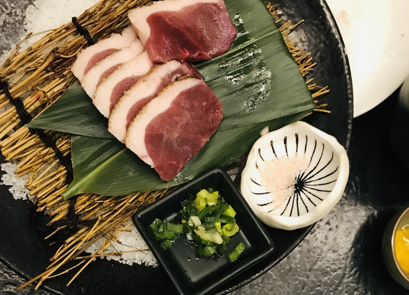 我們加價點了兩套980的極上:極黑和牛盛合,肉肉盛合(綜合肉片)。主餐和牛確實入口即化,肉肉分別有霜降牛、櫻桃鴨、豬肉也蠻軟嫩。加上自己DIY岩燒烤肉別有一番趣味性。想偶爾奢侈品嚐日式料理的好選擇之一。