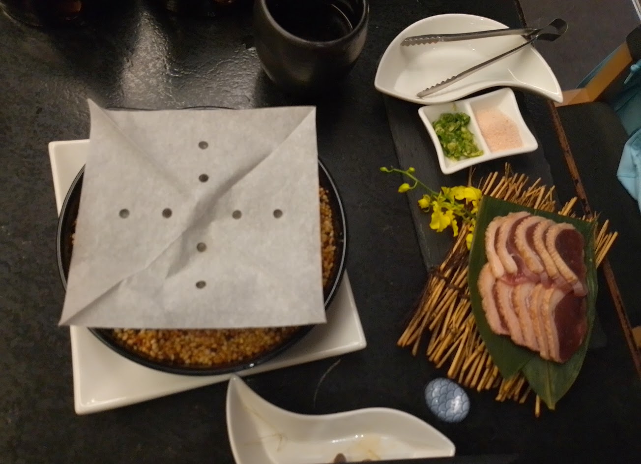分別和先生點了名物套餐$1380與極上套餐$980以價位和食材來說這CP值真的很不高,兩個人用餐要快2600! 前菜的櫻花蝦細麵絹豆腐,那豆腐就和市面上桂冠豆腐沒兩樣,連味道和口感都相同。 烤物的午仔魚一夜乾,送上來的擺盤確實漂亮,但用餐起來真的很吃到讓人生氣,每夾一口魚那盤子就轉一圈!那盤子真的很雞肋!!! 主餐黑和牛盛真的沒那價值,外面一堆生鮮買的牛肉都能打趴它! 食事釜飯、甜點、飲料表現一般,沒特別出色! 整個用餐空間也因為肉品需要自己烤,煙霧瀰漫! 整體而言,只有服務讓人滿意,其他餐點,真的不值得再回訪! 餐點:3 服務:4 氣氛:3