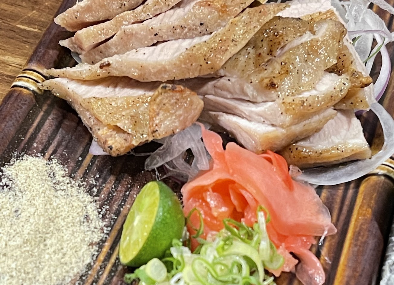 另外打卡送的炙燒比目鰭邊握壽司,口感入口即化;烤雞腿烤得香脆,感謝店家熱情招待!