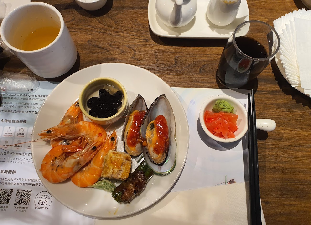 菜色非常非常普通,海鮮冷盤只有燙白蝦跟淡菜,這個價位起碼要有紅蝦扇貝吧。