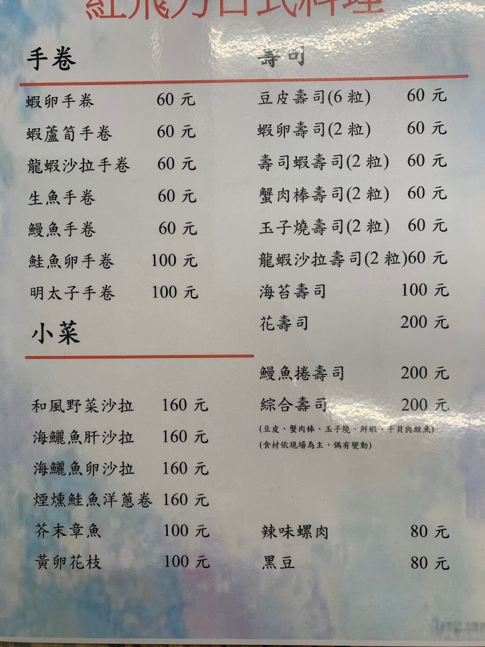 服務親切,尊重客戶的味覺,給于適當的調整,環境乾淨整潔,海鮮非常新鮮好吃,值得一再拜訪的日式料理餐廳。
