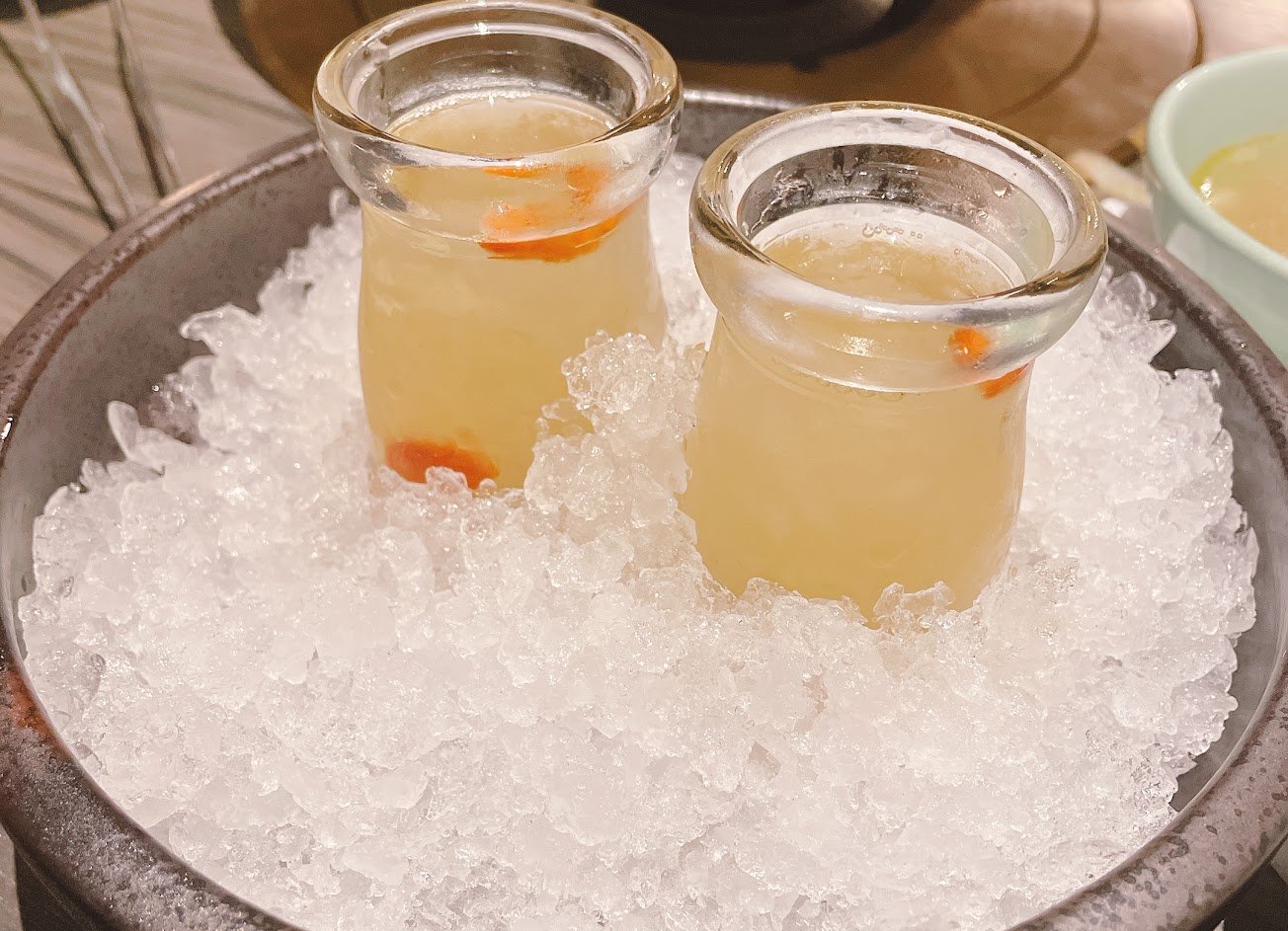餐後送的枸杞銀耳湯是用小的布丁杯盛裝的,就很喝很方店,但味道偏甜。