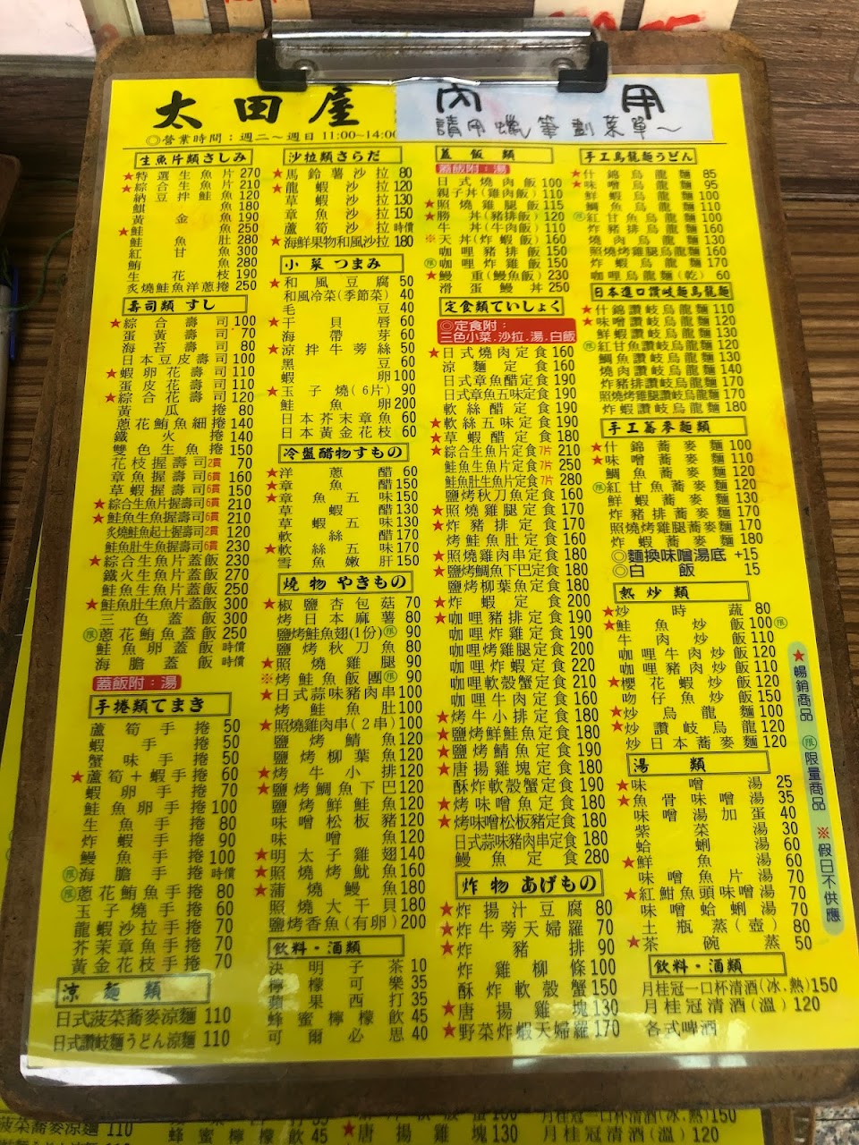2024最新在地推薦餐廳的菜單_太田屋日式烹割的菜單、圖片