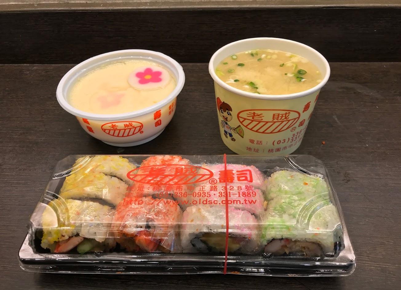 壽司味道較一般,比較沒什麼特別的,但口味很多可以選。蒸蛋和味噌湯CP值高又好吃,可惜的是蒸蛋的容器是塑膠…?